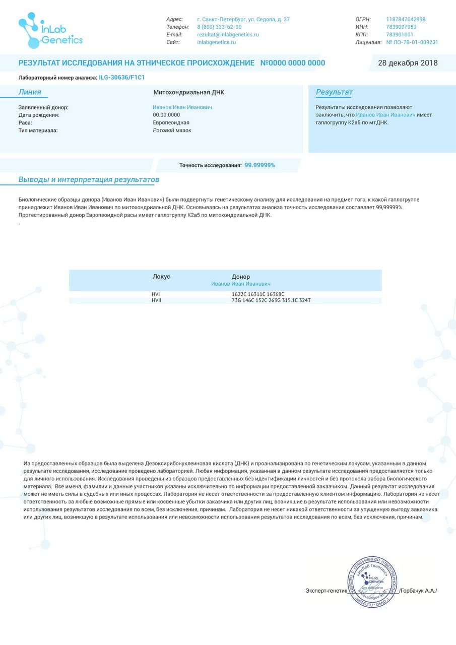ДНК-тест генеалогия по материнской линии в Любани