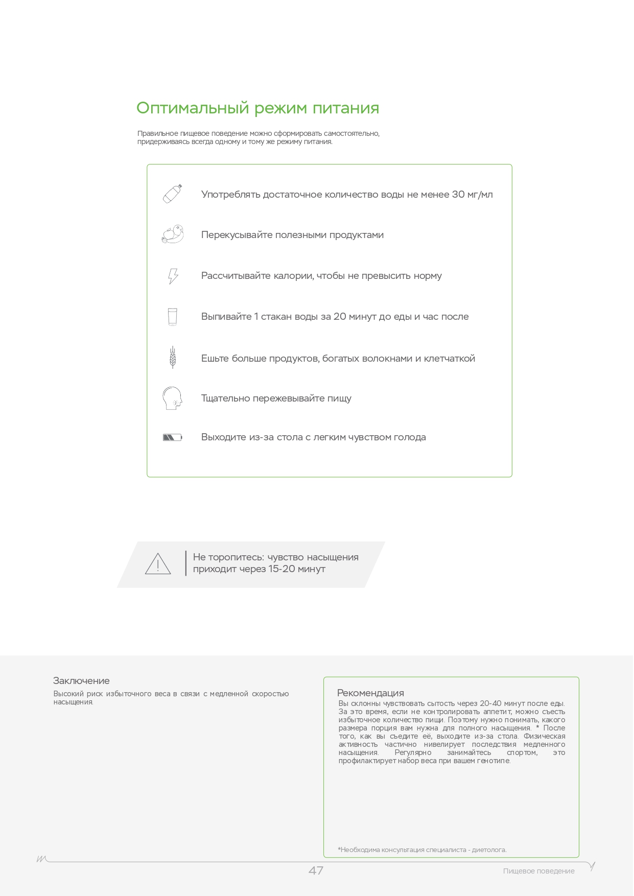 Помните, что помимо физических нагрузок, большую роль играет питание. Вы также можете пройти ДНК-тест на диету, который покажет, каких веществ не хватает в организме, какие организм усваивает лучше, а какие хуже и многое другое.